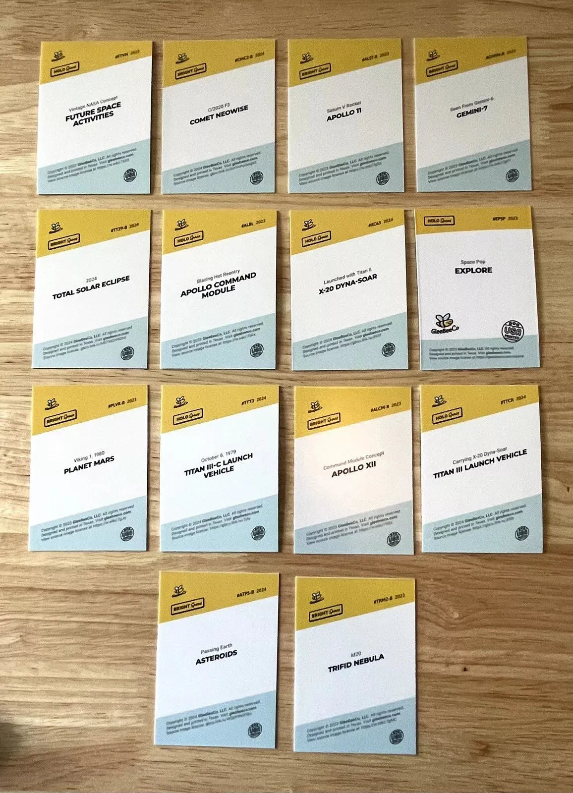 14 GleeBeeCo SPACE Cards Lot (6 Holographic) Apollo 11 GEMINI-7 Titan III, NASA