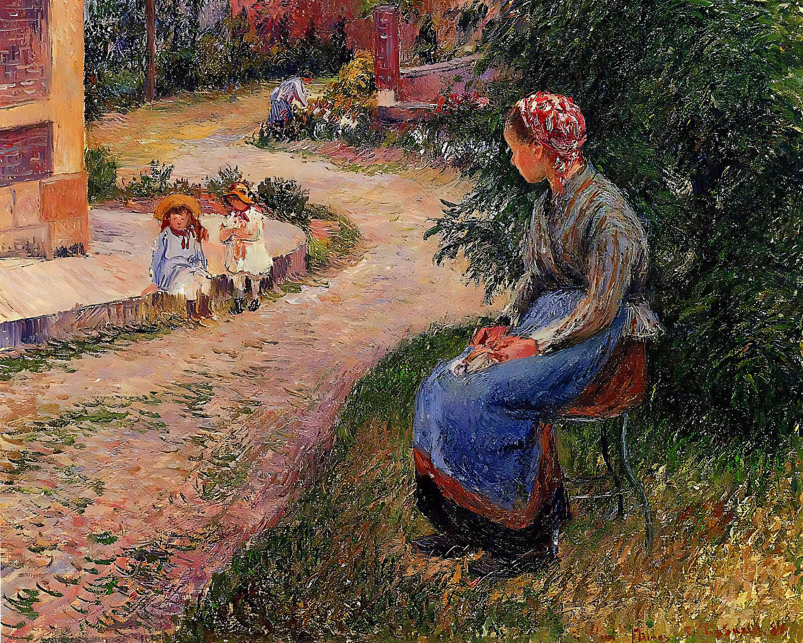 A Servant Seated in the Garden at Eragny by Camille Pissarro 8x10" Art Print
