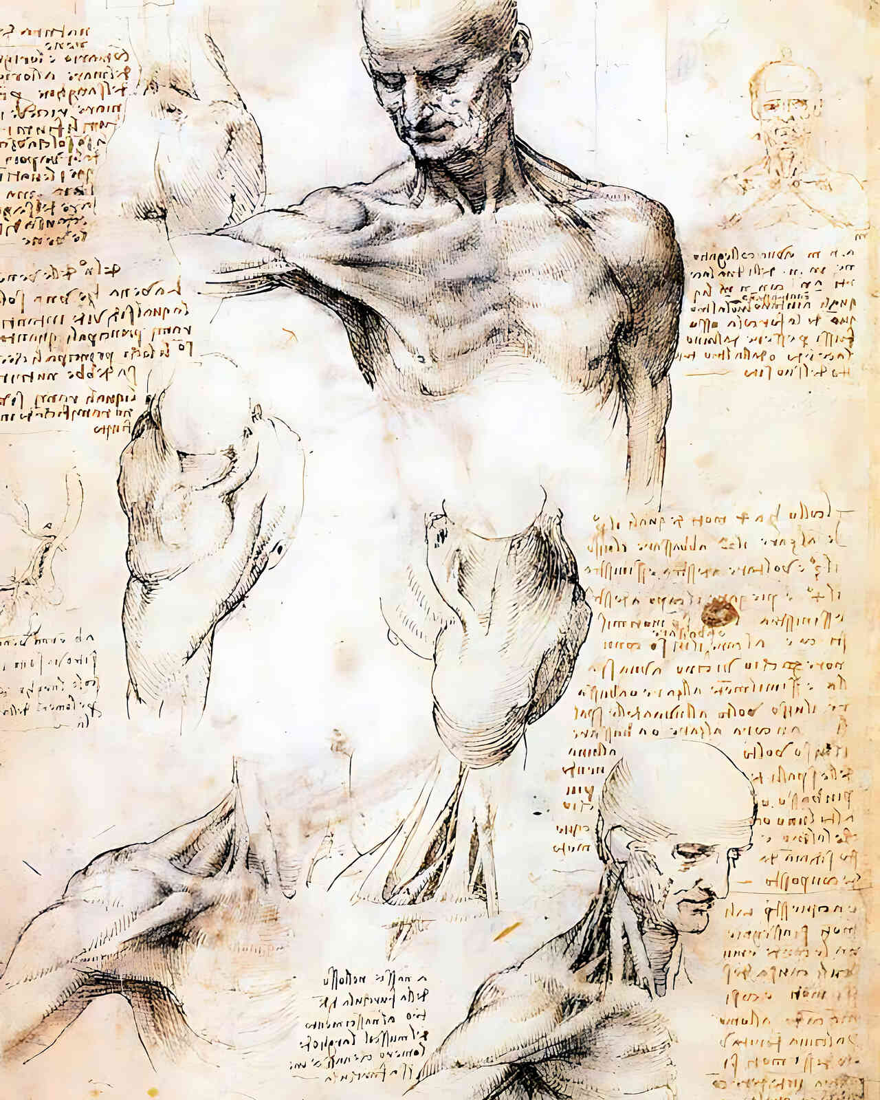 Anatomical Studies of a Male Shoulder by Leonardo da Vinci 8x10" Art Print