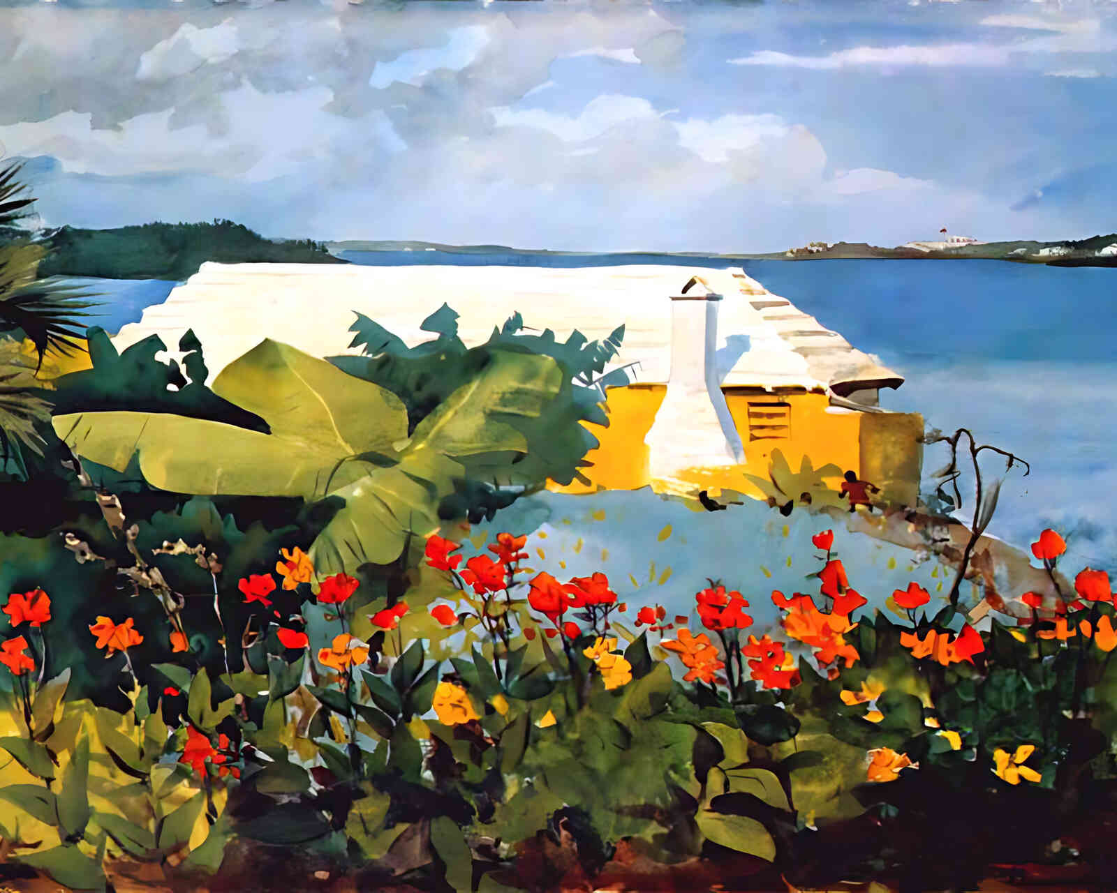 Flower Garden and Bungalow, Bermuda Painting by Winslow Homer 8x10" Art Print